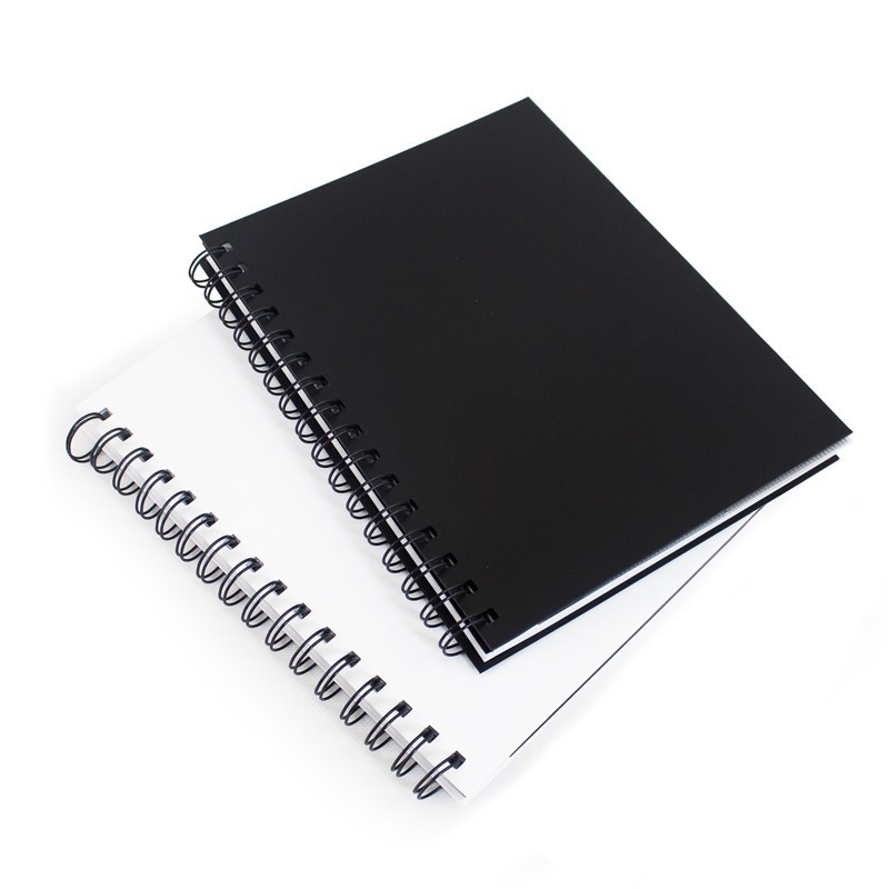 This A5 executive note pad features a durable polypropylene cover and spiral binding for ease of use. It comes with 60 sheets (120 lined pages) of high-quality paper, along with 4 business card sleeves and a document sleeve for added convenience. Available in black and white.