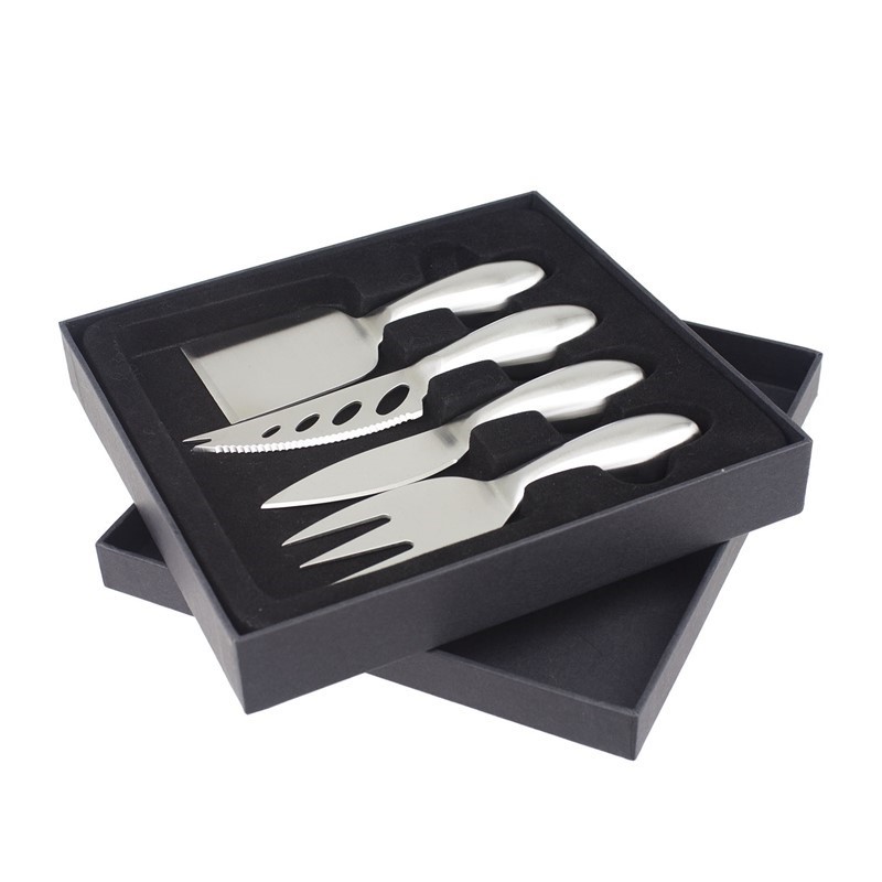 Experience cheese like never before with our Stainless Steel Cheese Knife Set! This 4-piece gourmet set includes knives for hard cheese, soft cheese, parmesan, and a fork—all crafted from durable stainless steel with a brushed finish for long-lasting use. Designed for comfortable and precise cutting, each knife features ergonomic, easy-to-grip handles. Packaged in a sleek black gift box, it’s the perfect gift for cheese aficionados. Dishwasher safe for easy cleaning, each knife measures 130mm in length, ideal for handling and serving various cheeses. The accompanying box, measuring 190mm x 175mm, provides convenient storage and display.