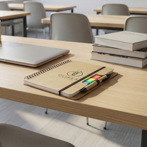 The Kraft Notebook with Notes and Flags is a practical, all-in-one writing solution for everyday organisation. The wiro bound notebook features 80 leaves of lined recycled paper, complemented by integrated sticky notes and adhesive flags for quick referencing and reminders. A recycled kraft cardboard cover provides a clean, natural finish, and a matching kraft pen is included for added convenience.