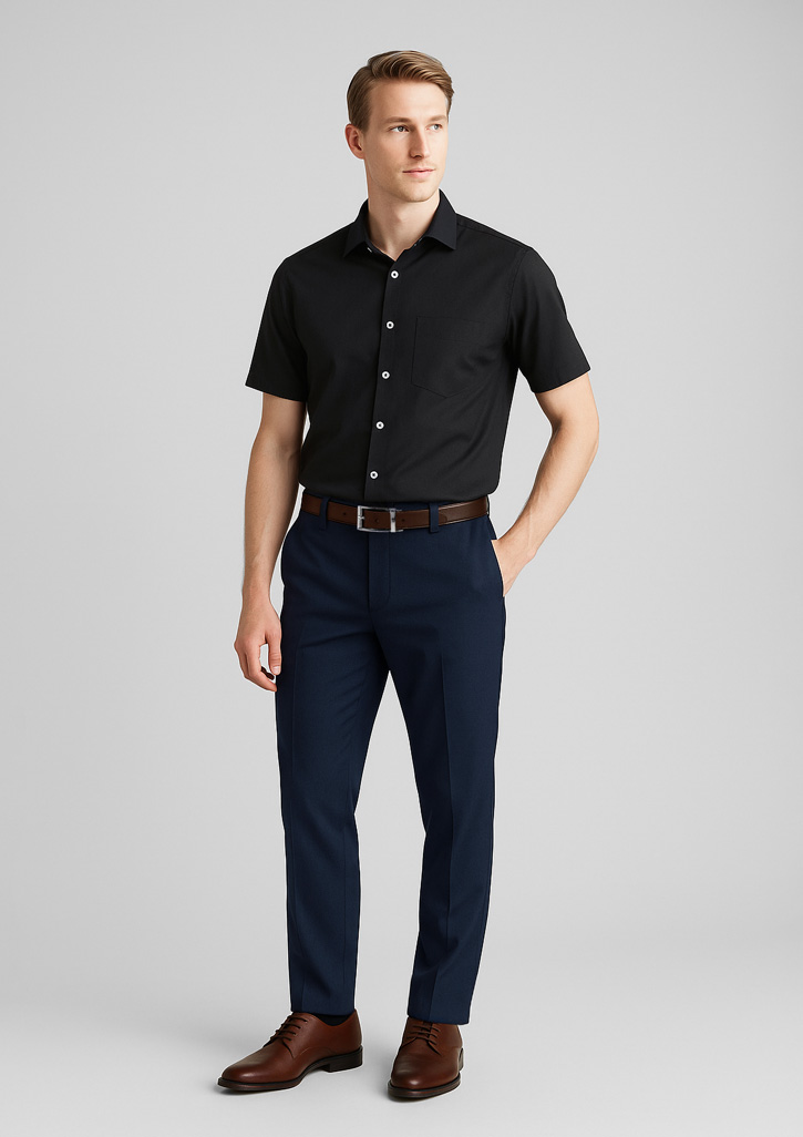 Fabric:– 55% Polyester 43% Wool 2% Elastane– Premium wool blend suiting with polyester for durability. With the added stretch and comfort of Elastane.Features:– Flat front and tapered through the leg. Waistband with stretch fusing. Internal security pocket on right front pocket, and two rear pockets.Product Care:– Trousers – Wool cycle machine wash or hand-wash using wool detergent. Wash with similar colours. Do not bleach, soak or tumble dry. Line dry in shade. Warm iron (wool settings). Recommend dry clean 30°C.