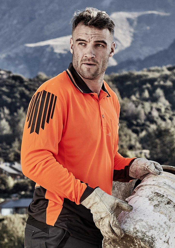 Fabric:Features:– Unique Hi Vis compliant stretch mesh runs down the entire side panel and under the sleeve for extreme breathability in hot