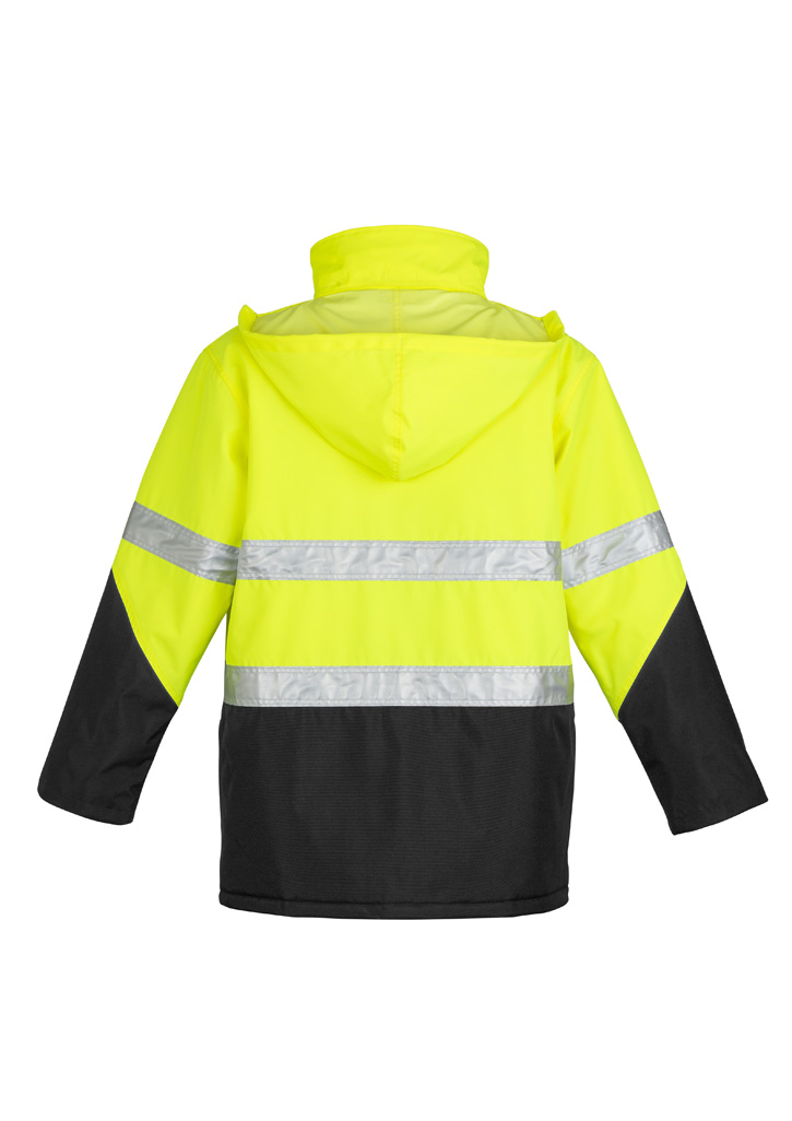 Fabric:Features:– Quilt lined with internal pocket– Waterproof rating 5,000mm– Fully seam sealed– Reflective tape– Front flap pockets with side hand warmers– Zipped chest pocket with wire management– Adjustable cuff fasteners– ID chest pocket– Concealed hood in high neck line– Internal ribbed cuffs