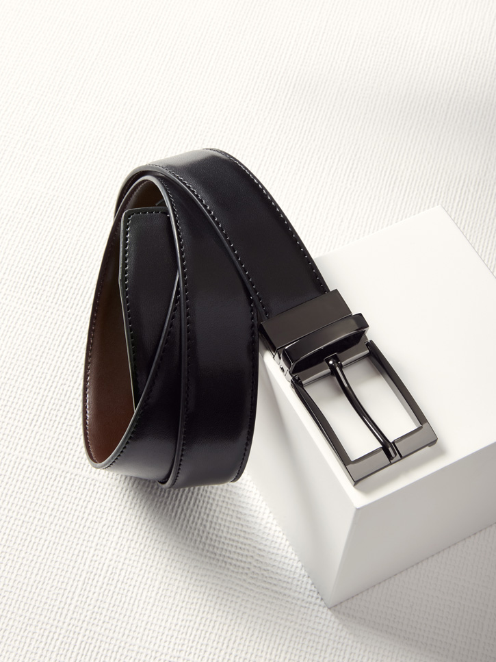 Fabric:– MENS LEATHER REVERSIBLE BELT– 100% leather centre, with 100% PU outerFeatures:– A quality reversible corporate belt that is versatile in function. Alternative waist style options with brown on one side and plain black on the reverse.