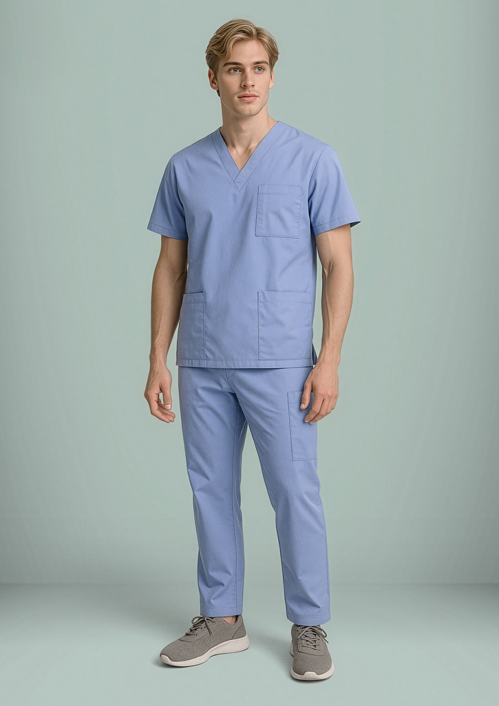 Fabric:– 65% Polyester, 35% Cotton– High performance soft touch fabric– Natural stretch fabric for added comfort– Laundry friendly – can be laundered to hygienic 80°C– 155 GSMFeatures:– Mens style features 2 front slant pockets and 2 cargo pockets with functional inner right pocket– Elasticated waist and drawstring– Womens bootleg style features 2 front welt pockets with functional inner right pocket– Flat front with elasticated rear waistband