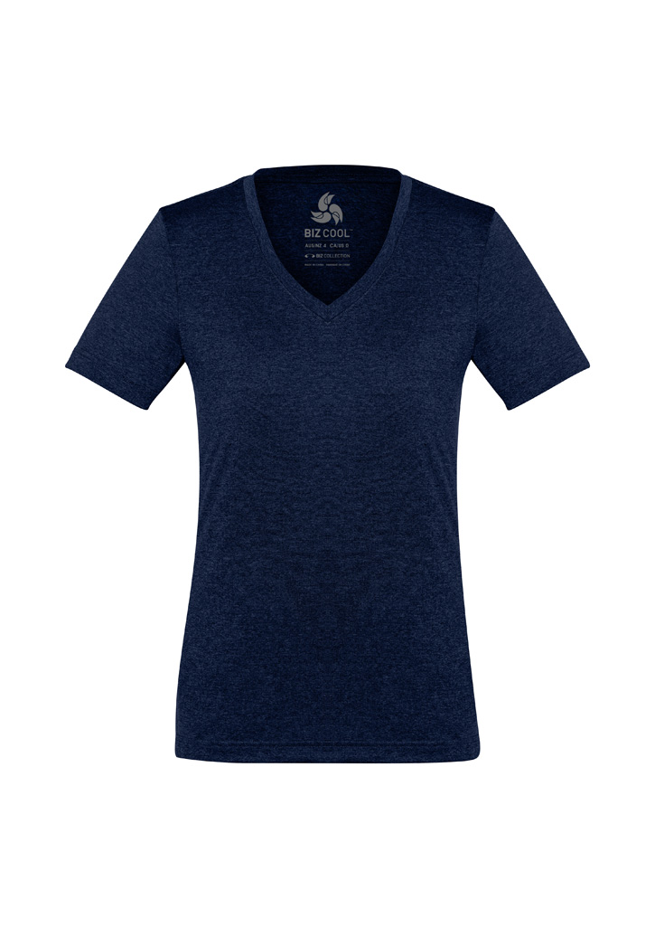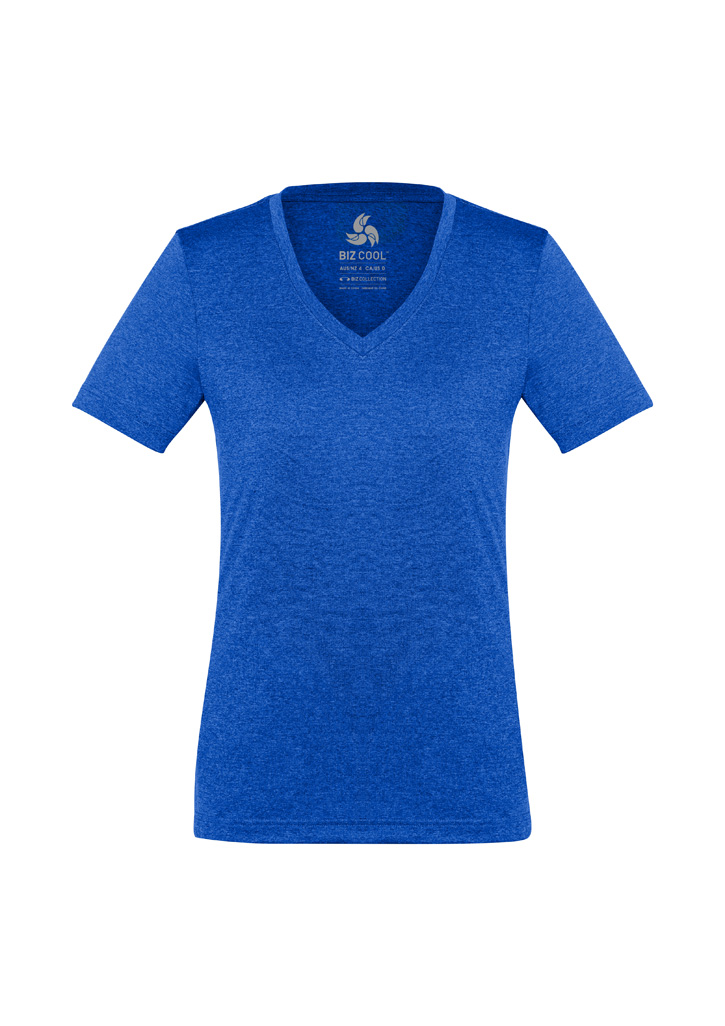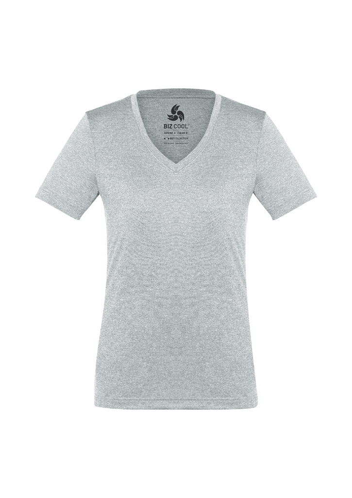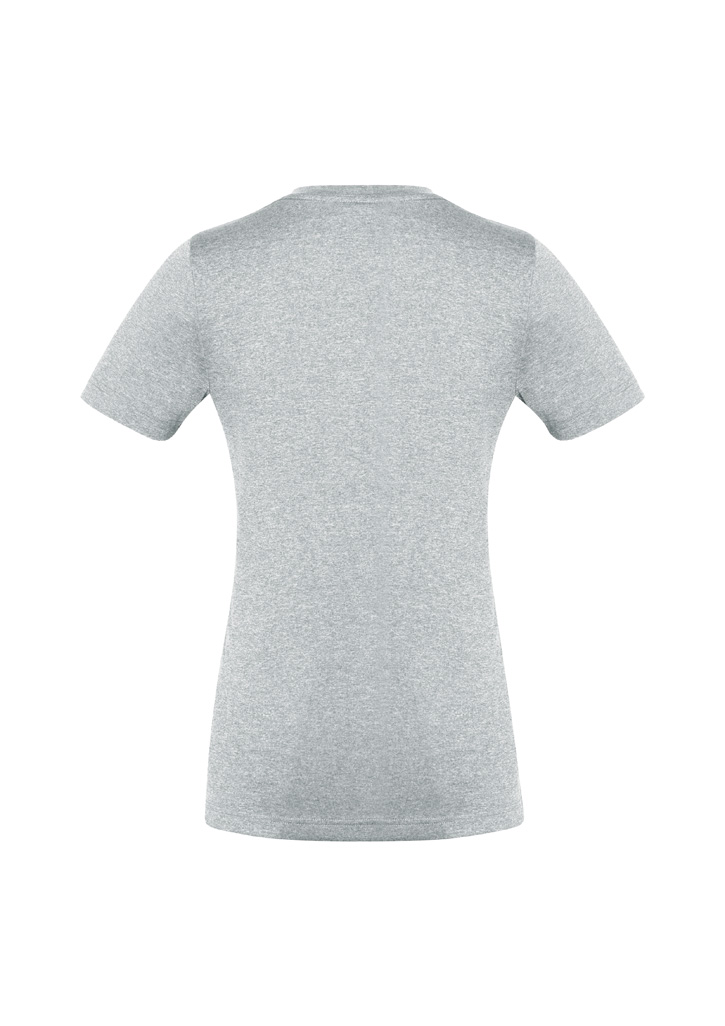 Fabric:– 100% BIZ COOL™ Cotton-feel Micro Polyester– 160 GSM– UPF rating – GoodFeatures:– No-fuss anti-shrink, anti-fade fabric has a soft hand feel that keeps you cool and dry– Heathered marle effect fabric for a modern athletic look– Ladies style features a flattering v-neck