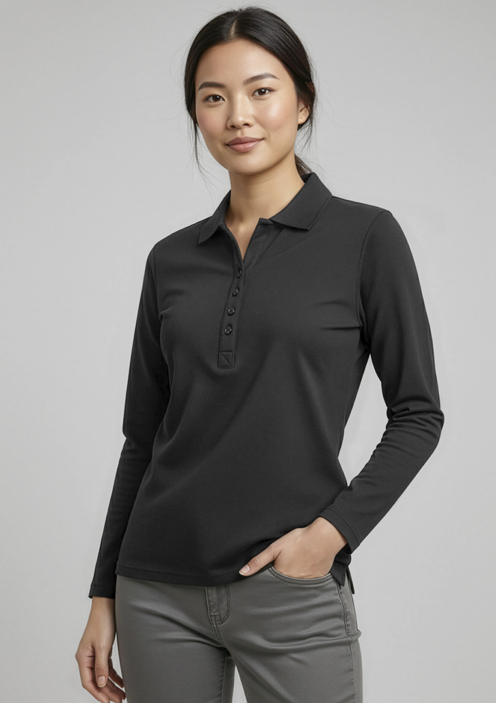 Fabric:– 65% Polyester, 35% Cotton Pique– 210 GSM– UPF Rating – Light Colours UPF 30+, Dark Colours UPF 50+Features:– Durable top-stitched armhole and twin needle sleeve/hem– Knitted flat collar for sleek appearance– Ladies style features fashionable Y-placket design