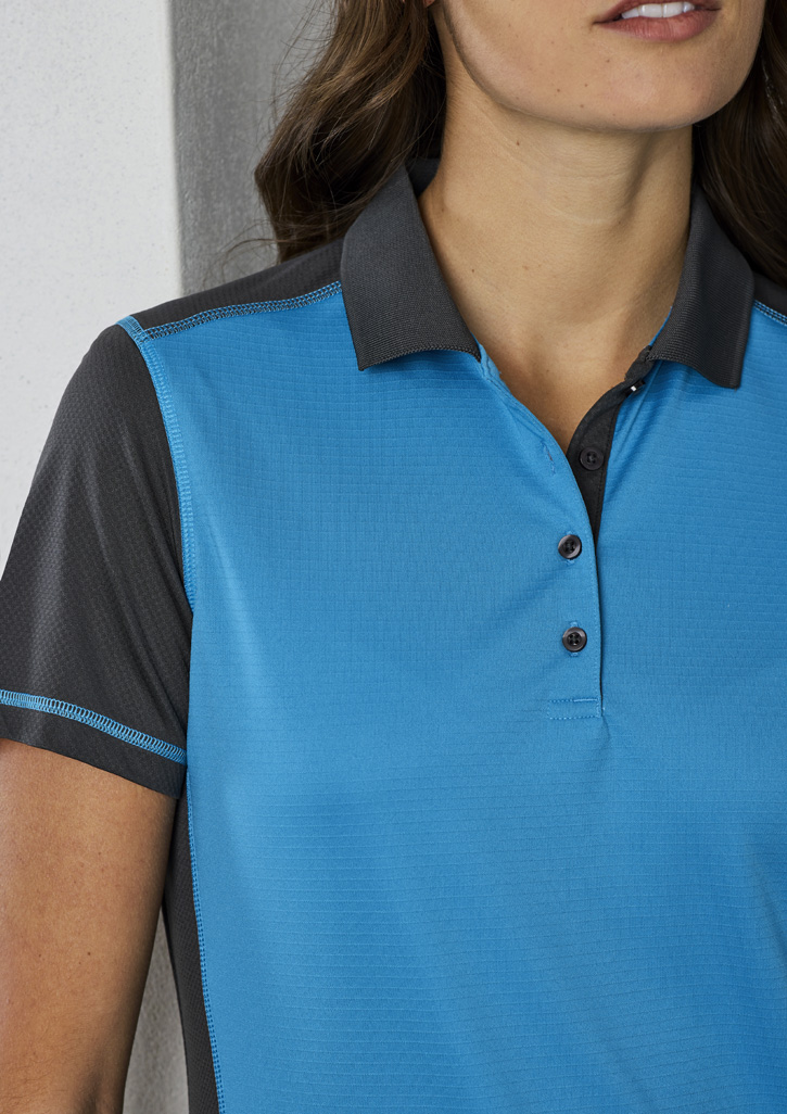 Fabric:– BIZ COOL™ 97% Polyester, 3% Elastane honeycomb knit; 180 GSM; UPF Rating 50+Features:– Soft honeycomb knit fabric– Knitted rib collar– Textured knit contrast colour front panels– Contrast colour topstitching– Button through placket