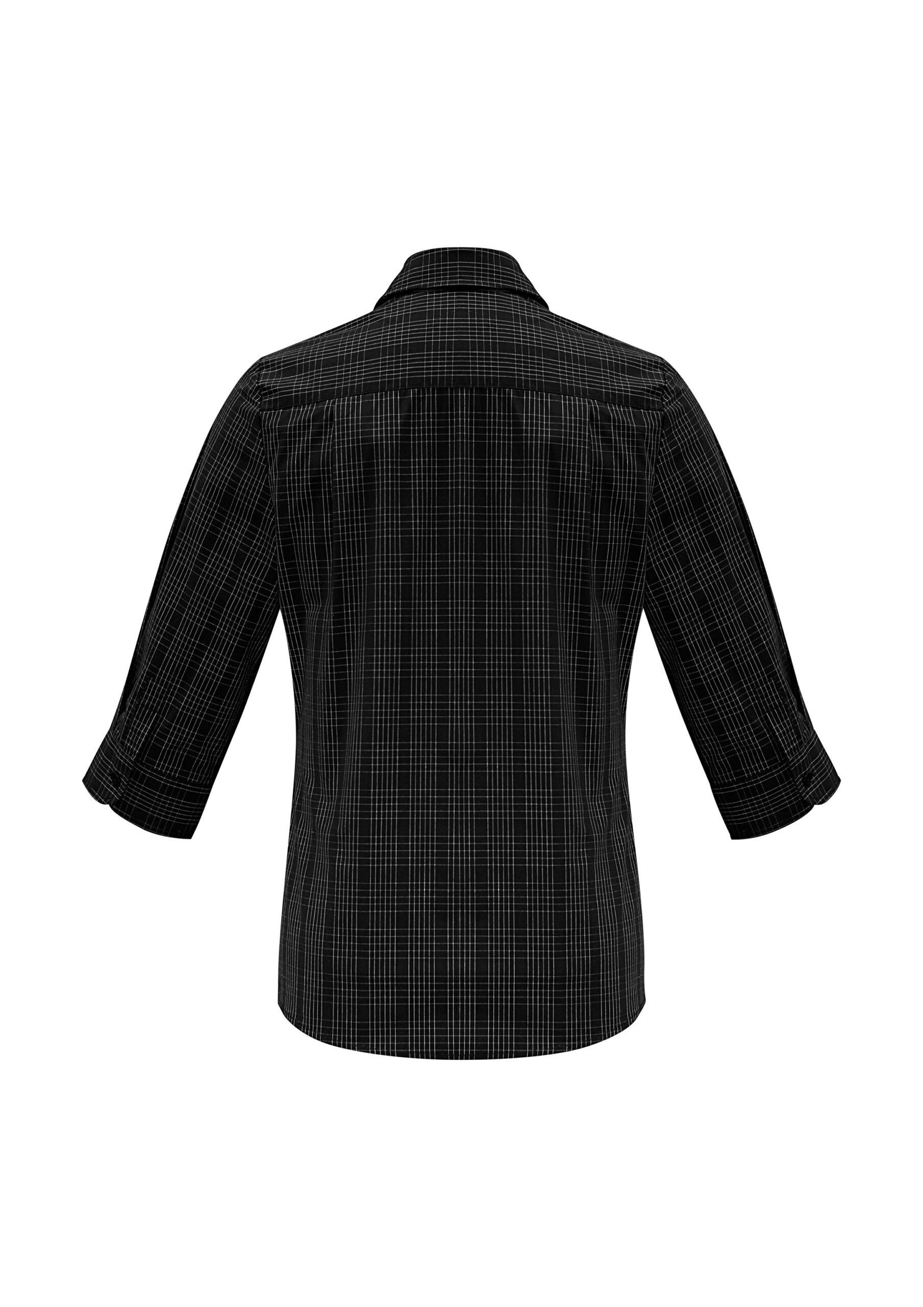 Fabric:– Easy Care 65% Polyester, 35% Cotton– Yarn dyed, Prince Of Wales check fabric– UPF rating – Very GoodFeatures:– Feminine waist and bust darts for a shaped silhouette– Standard slim collar and pocket– Curved hem – can be worn in or out