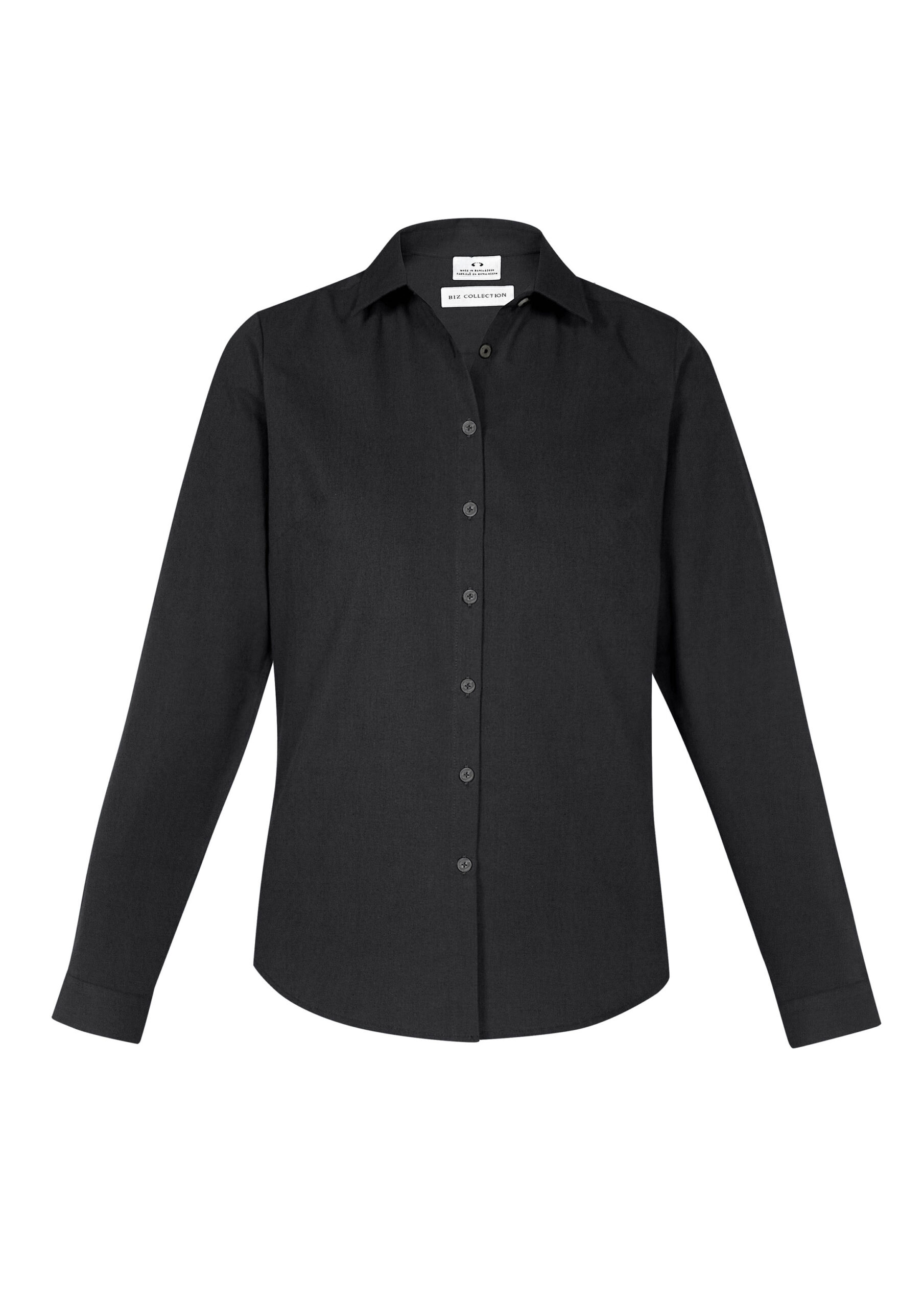 Fabric:– 60% Cotton, 40% Polyester– Pre-shrunk plain oxford weave fabricFeatures:– Garment washed for added softness and easy minimal ironing– Ladies style features semi-fitted silhouette, with shirt tail hem and back box pleat– Can be worn tucked in or out