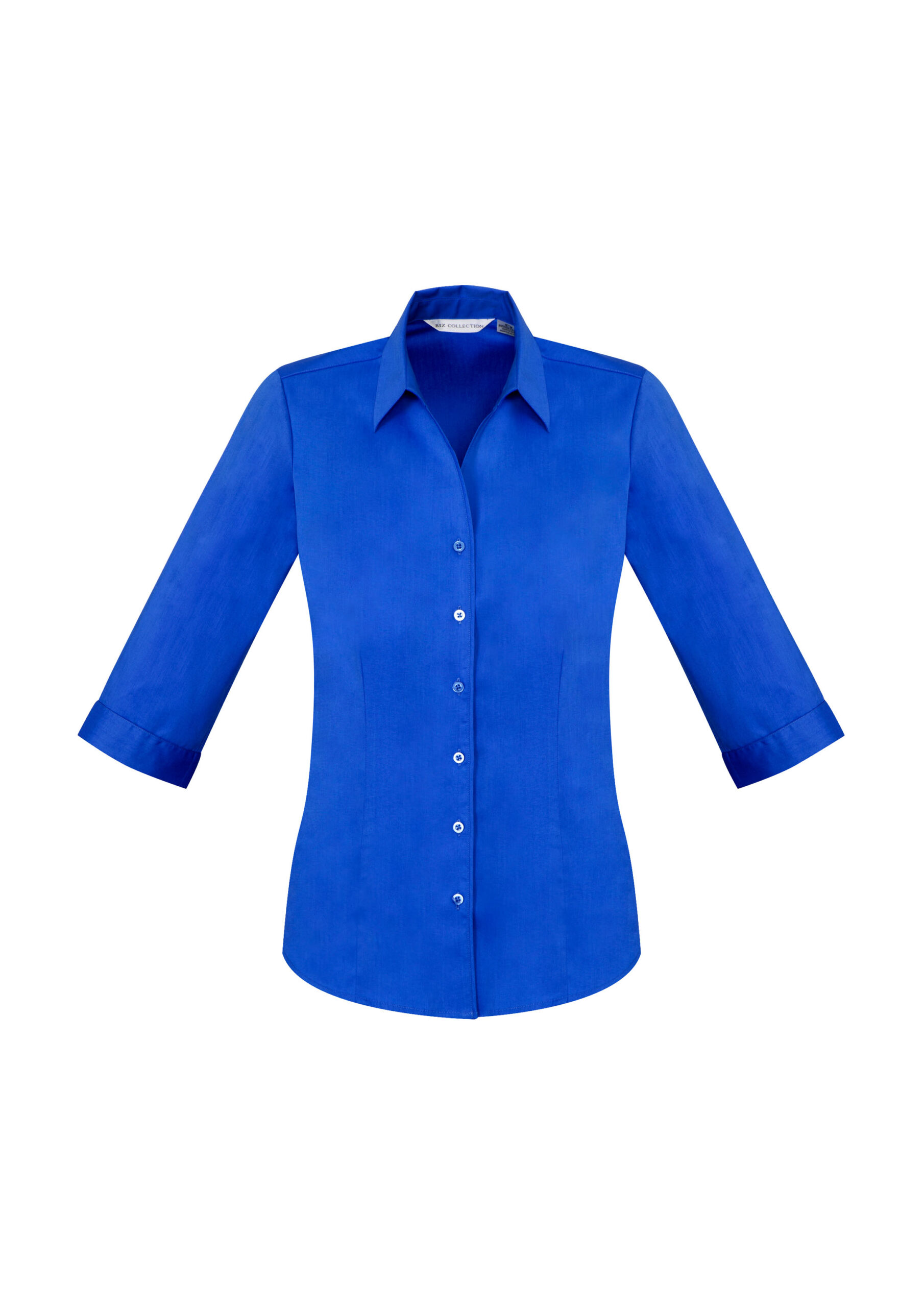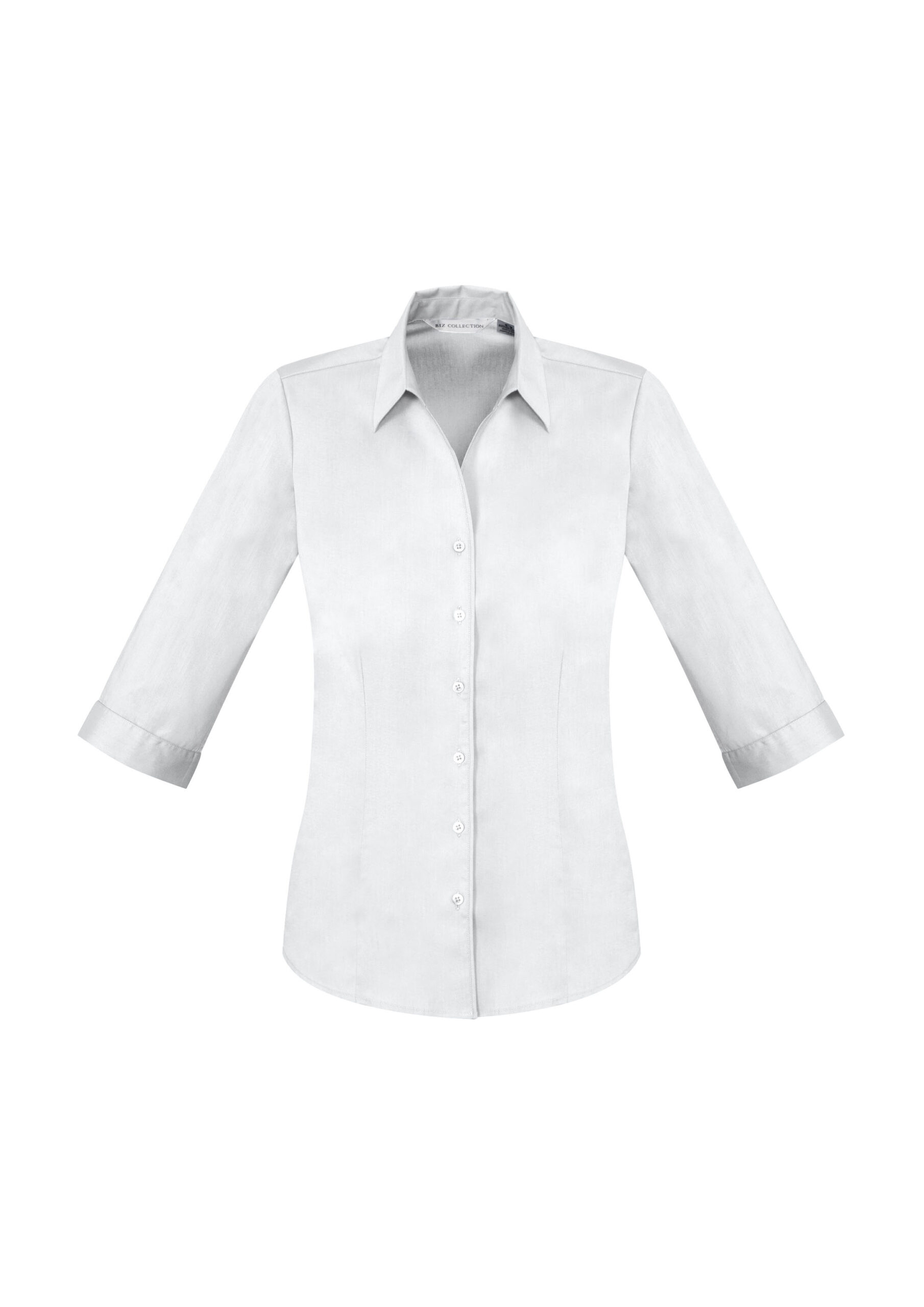 Fabric:– Cotton-Rich 68% Cotton, 28% Polyester, 4% Elastane– Built in stretch for superior comfort– UPF rating – Very GoodFeatures:– French style Y-neckline, turn back cuff design and twin back pleats– Waist and bust darts for elegant fit– Longer length with curved hem – can be worn in or out
