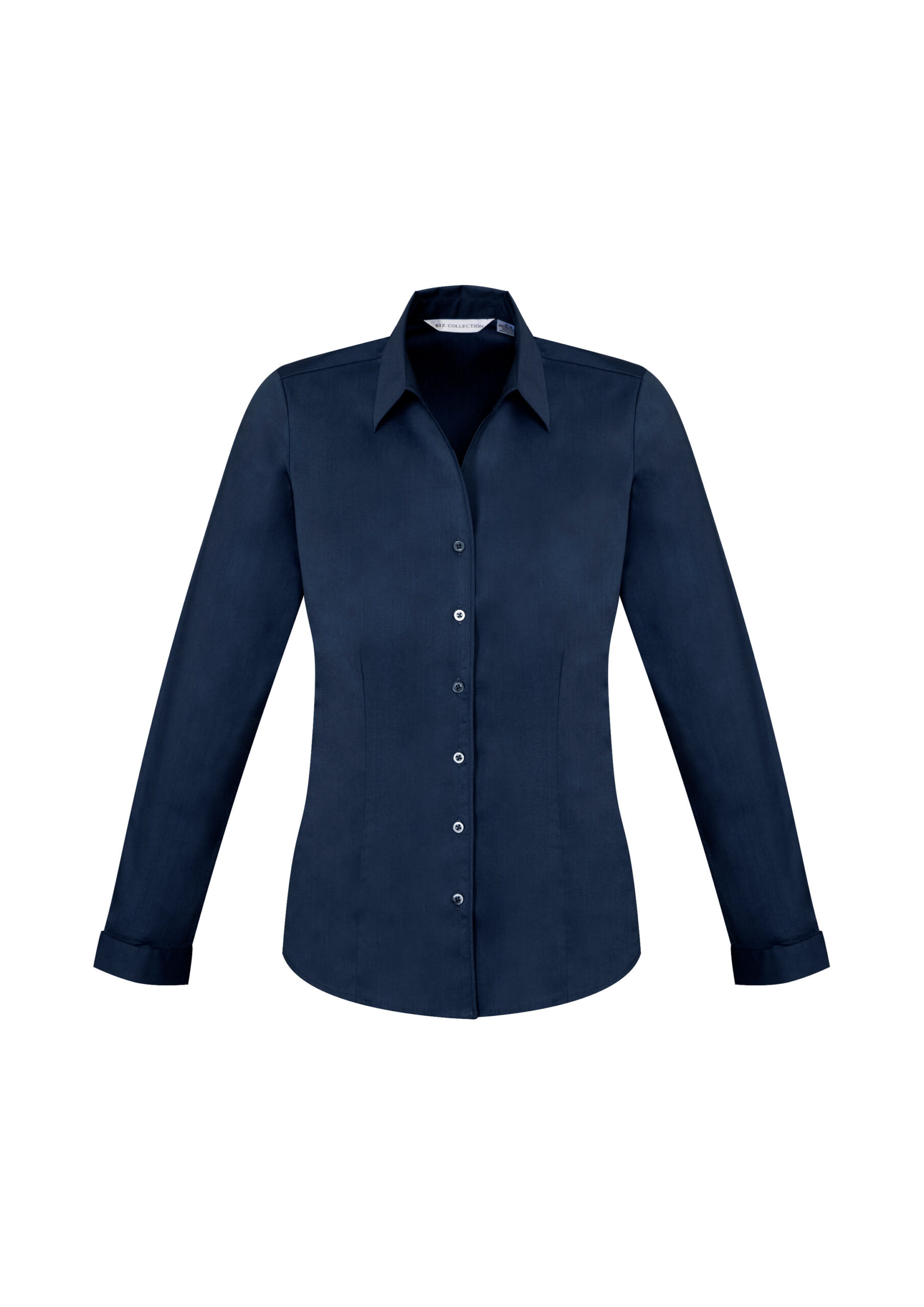 Fabric:– Cotton-Rich 68% Cotton, 28% Polyester, 4% Elastane– Built in stretch for superior comfort– UPF rating – Very GoodFeatures:– French style Y-neckline, turn back cuff design and twin back pleats– Waist and bust darts for elegant fit– Longer length with curved hem – can be worn in or out