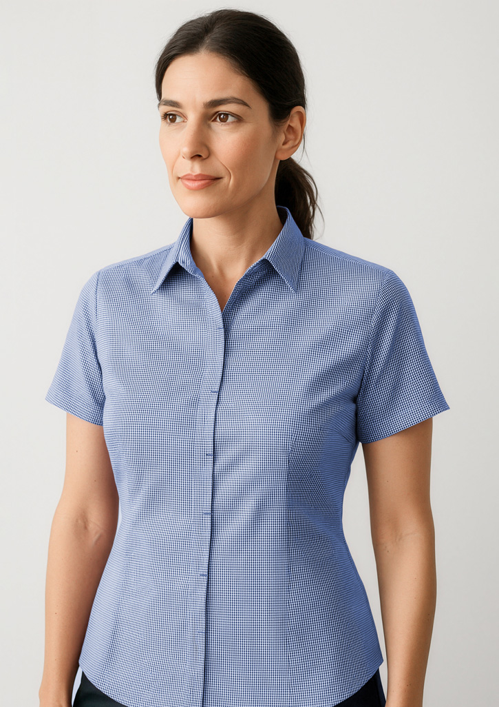 Fabric:– 65% Cotton, 33% Polyester, 2% Elastane– Cotton-rich fabric provides a soft hand feel, with the durability of polyester. Yarn dyed gingham check for a premium look, with added Elastane for comfort and stretch. Gentle machine wash and cool iron.Features:– Yarn dyed Gingham check in a cotton rich fabric. Perfect for those after a premium breathable fabric, with the benefits of easy care and stretch for comfort.– Mix and match with white shirts and blouses to add interest to your wardrobe range.