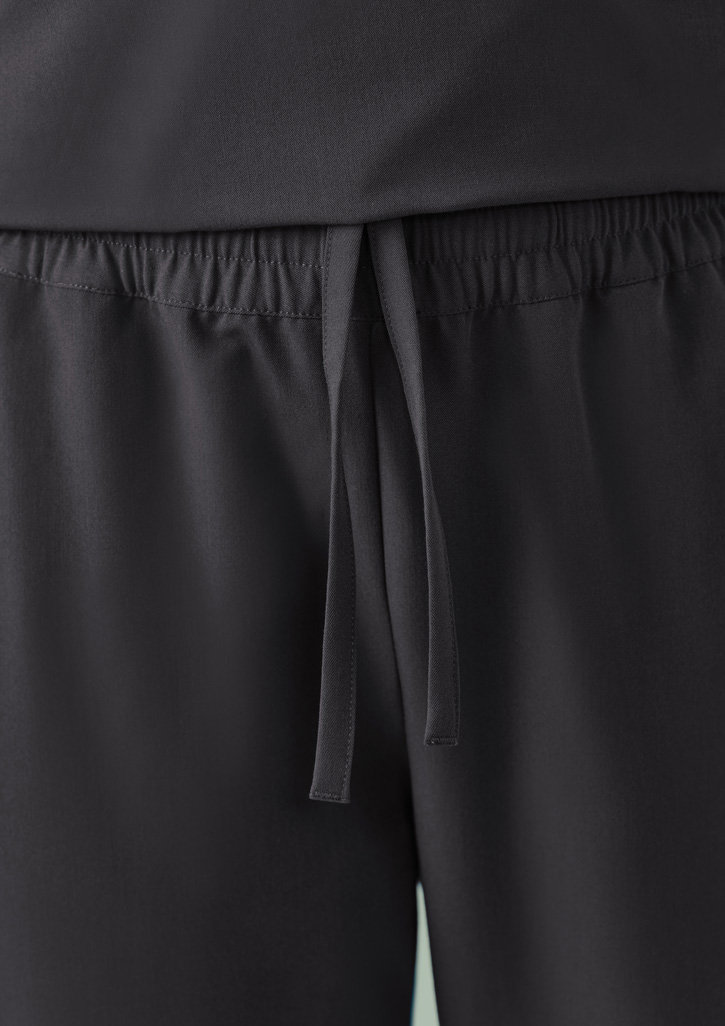 Fabric:Features:– 2 Side front pockets– 1 cargo style pocket on side leg and 1 back pocket– Slim leg pant – tapered from knee down to cuff; Elastic waist with internal draw string closure– Utility loop on RHS waistband– Dyed to match stretch cuffs– Match with Pulse scrub tops – CU543LS