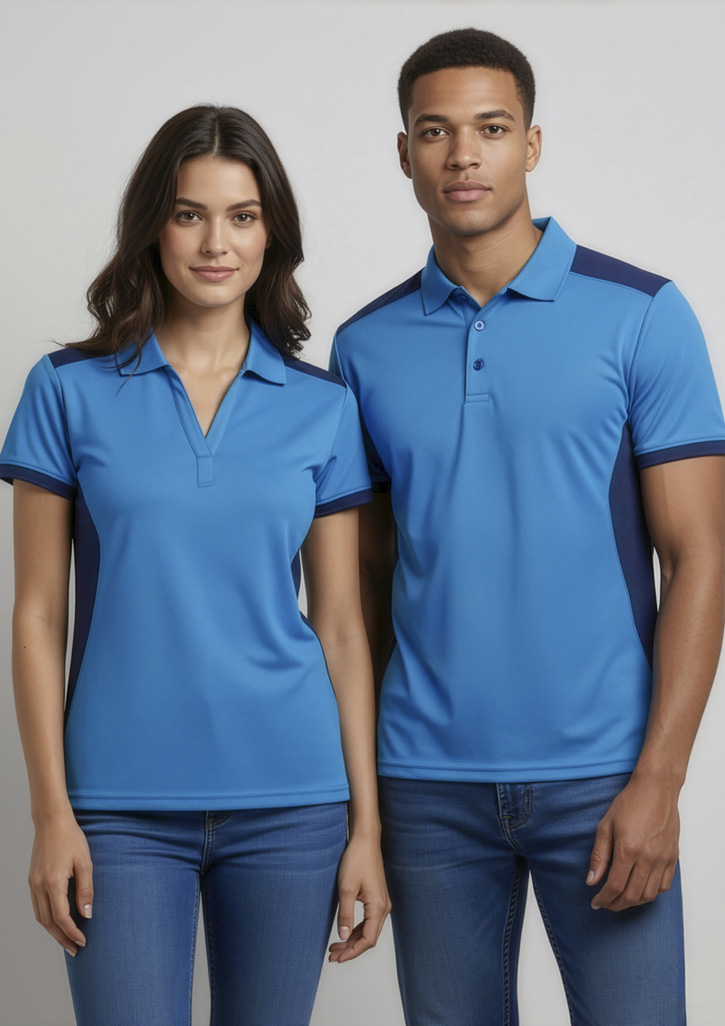 Fabric:– 100% BIZ COOL™ Polyester Micro Interlock– 145 GSM– UPF 50+Features:– Bold contrast panel design– Self fabric collar and contrast sleeve cuff– Ladies style features Y-line placket– Mens style includes loose pocket