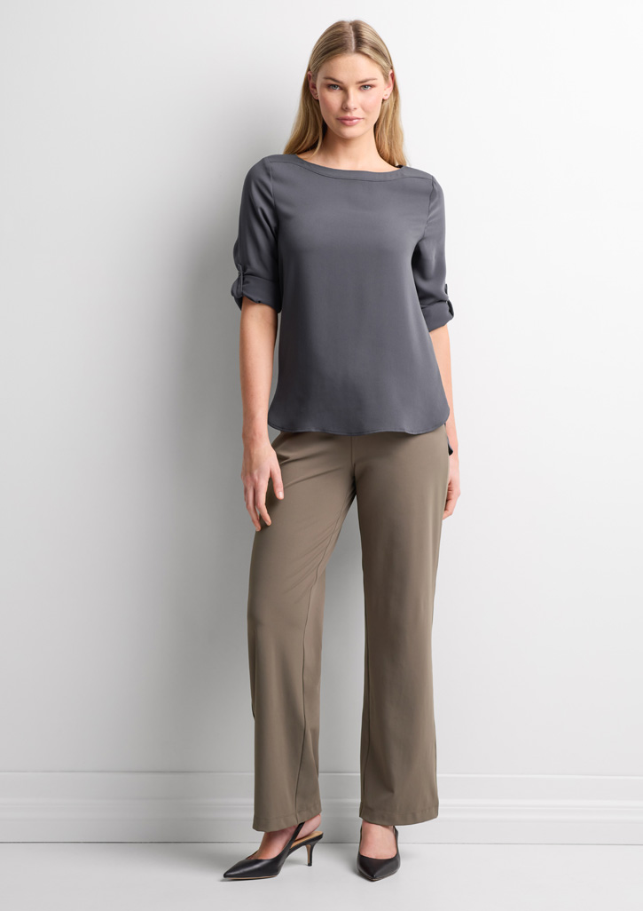 Fabric:– 79% Polyester, 21% Elastane; 250 GSMFeatures:– High-waisted– Full-length, wide-leg design– Mock fly– Fully elasticated waistband– Functional belt loops– Practical slanted side pockets– Back darts– Back welt pockets– 4XL and 5XL available July 2026